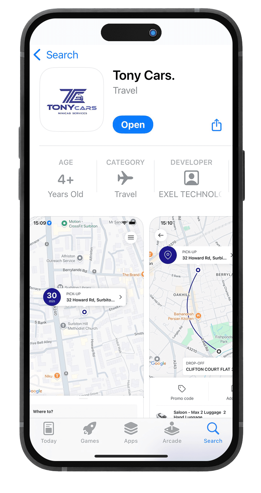 Travel smarter with the Tony Cars mobile app, designed to make your journeys safer and more convenient.